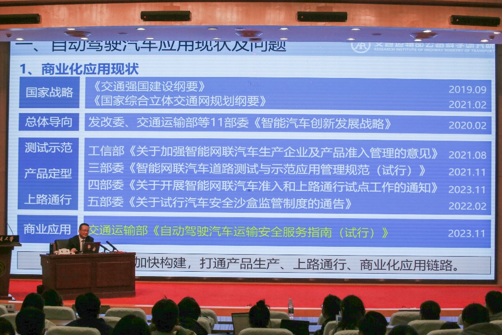 最后,周炜主任表达了对新时代中国青年勇担实现中华民族伟大复兴的历史使命的期望,以及对广大师生积极投身绿色智能道路运输科技创新的愿景。周炜主任的精彩讲座令在座师生听众对绿色智能道路运输的丰富内涵有了更深刻的理解,也更加激发了本研学生对自动驾驶运输服务高质量发展的研究热情,对师生们拓宽学术视野、启发创新思维具有重要的指导和助推作用。