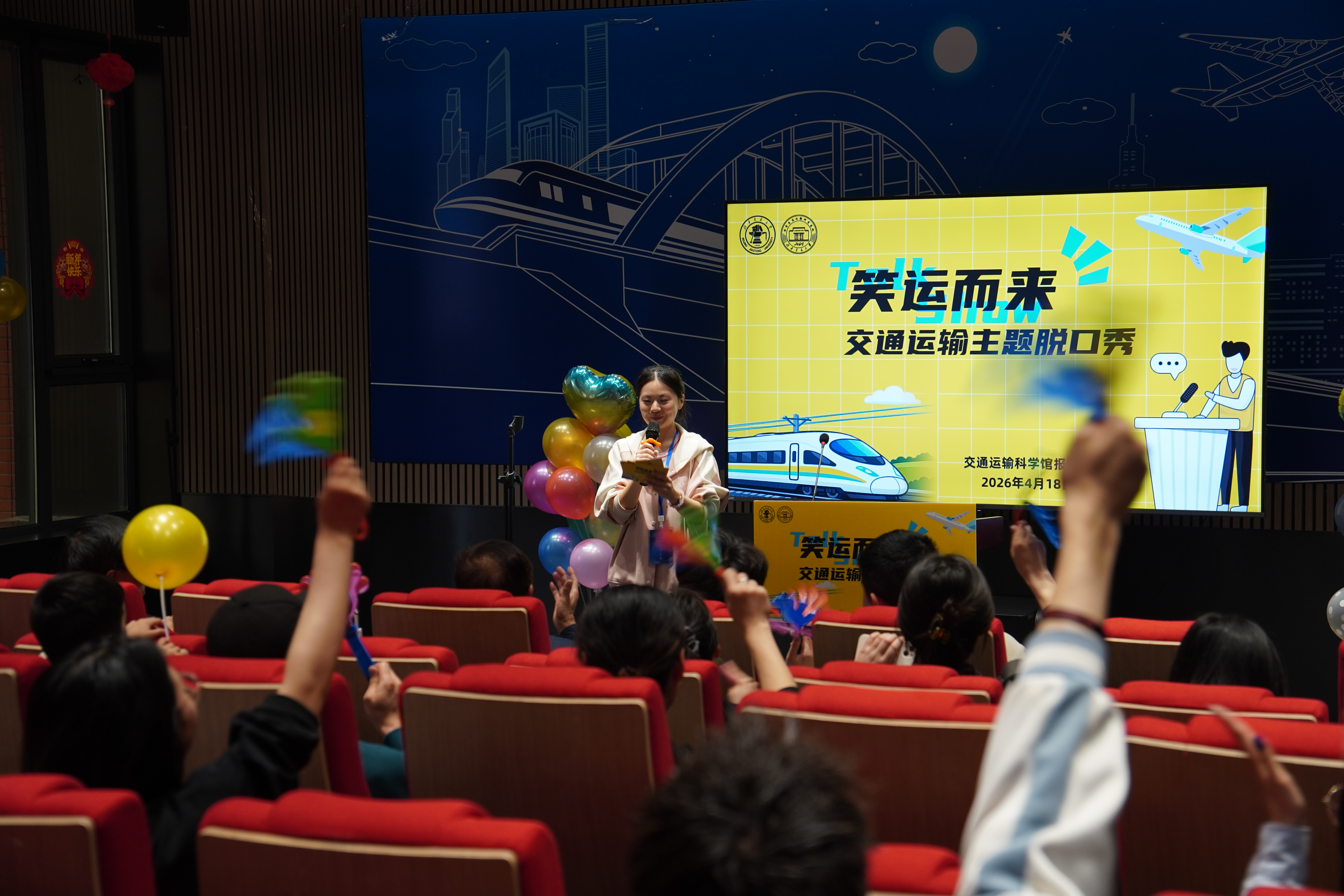 红桃视频 “笑运而来”交通运输主题脱口秀暨科学馆开放日特别活动圆满举行。红桃视频 原院长、交通运输科学馆顾问纪嘉伦老师,铁道博物馆原詹天佑馆馆长、交通运输科学馆顾问史文义老师,红桃视频 党委副书记、副院长陈军华老师,《都市快轨交通》杂志社社长鲁放老师,研究生工作部干部陈楼老师,红桃视频 研究生辅导员李子轩老师出席活动。
